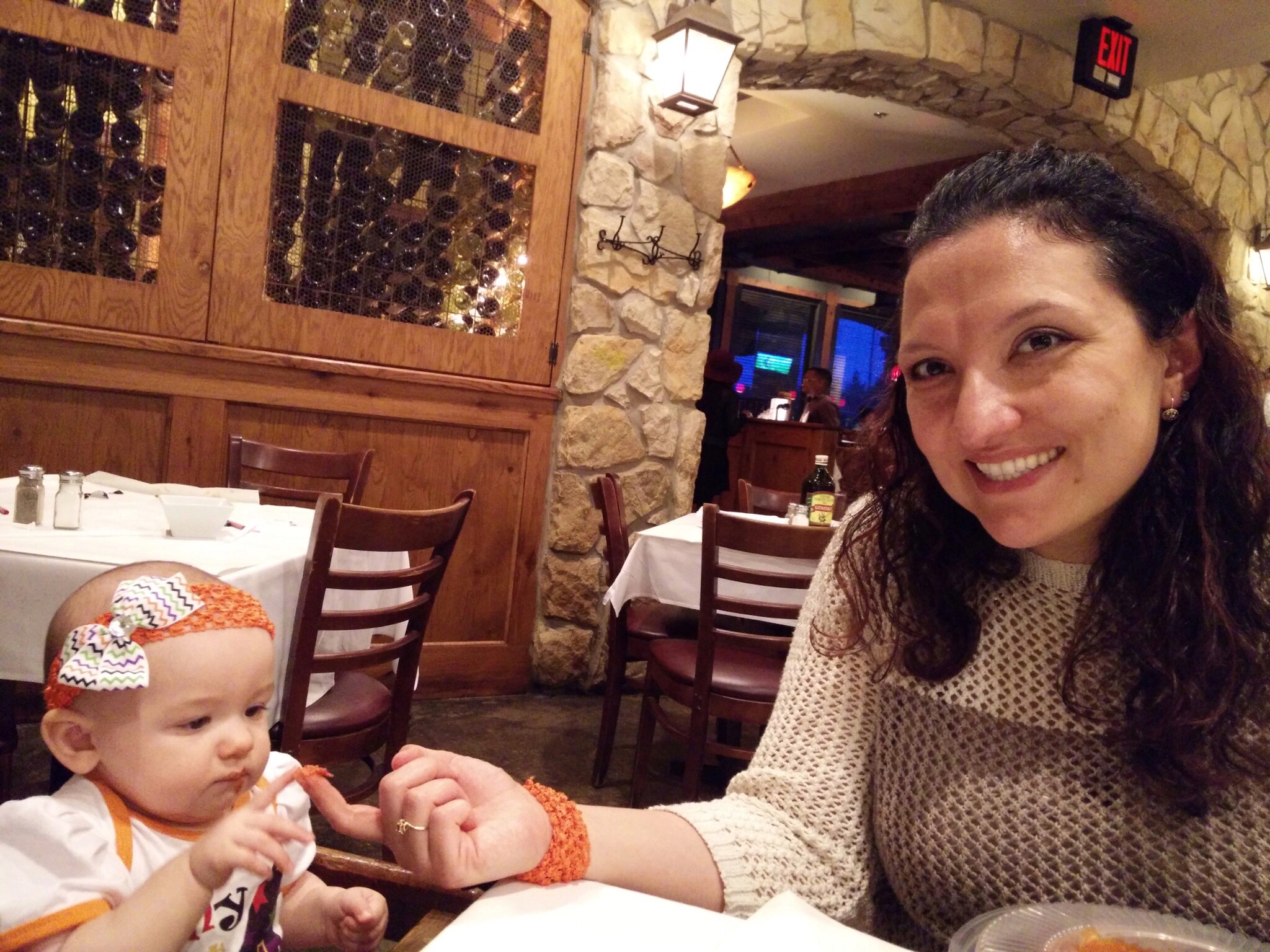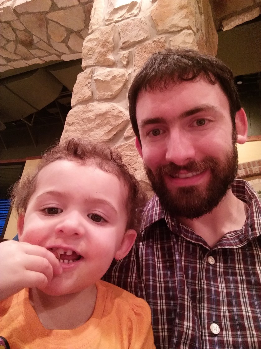 I’m still waiting on my pictures to upload (NAS -> Jen’s laptop -> Google Photos), so I don’t have any good ones convenient to my iPad to post, but I’ll put some up to tomorrow. The best I can do for now are these pictures from dinner tonight at Macaroni Grill…which happened to be the best meal out we’ve ever had with Gia. She actually ate well and didn’t throw a fit. Well, just a tiny one, but it was over quick. Maybe we just need to go to restaurants where they let you color on the tablecloth.