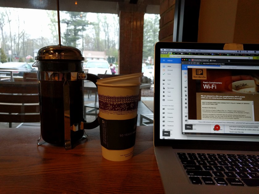I’m actually at a different Peet’s today than I was yesterday too. I ended up having to do part of the daycare dropoff this morning (usually Jen takes care of it), so I was going to just go to the Starbucks near there since it’s the most convenient. But I looked in the window as I drove past, and it looked like all the seats were taken. So I was going to just go to the same spot I was at yesterday, but I decided to check Google Maps just to make sure there wasn’t another option nearby I hadn’t seen yet. Turns out they have a (new?) filter available for just Coffee + WiFi, which is exactly what I was looking for. There was a place called Sakasa Tea & Coffee just a few minutes away. I was amazed I’d never heard of it! So I drove over, and ended up in the middle of a residential neighborhood. Either somebody was running a coffee shop out of their house, or Google Maps was wrong. But at this point I was already halfway to the Burke Peet’s, so I just drove over here. It’s nice! And just down the street from a library, which is where I’ll go when I get tired of sitting here.