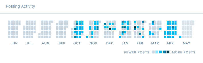 I said I’d post every day in April, and I did! The above is a screenshot from the Insights tab of the WordPress.com statistics page. I started my job here at Automattic in September, and started my blog in October.
