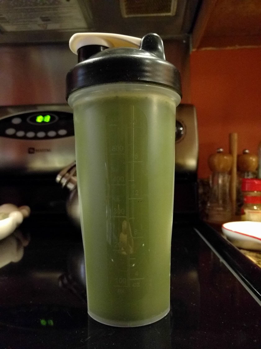 Recently I’ve started drinking this in the morning (in addition to coffee). It’s the juice of a whole lemon, ~1tsp of edible matcha green tea powder, ice, and water. It’s delicious, and a great energizer.