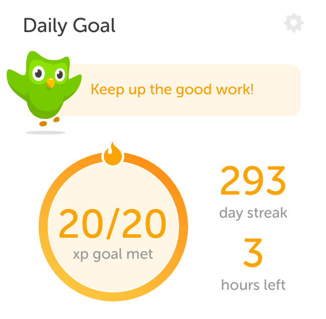 Back on October 21st, almost a year ago, I posted that I had sadly lost my streak on Duolingo. My record was 292 straight days, and I lost it by going two days in a row without taking a lesson. My excuse was that it was the last two days of the Automattic Grand Meetup, and I was pretty busy. But it was a little devastating.